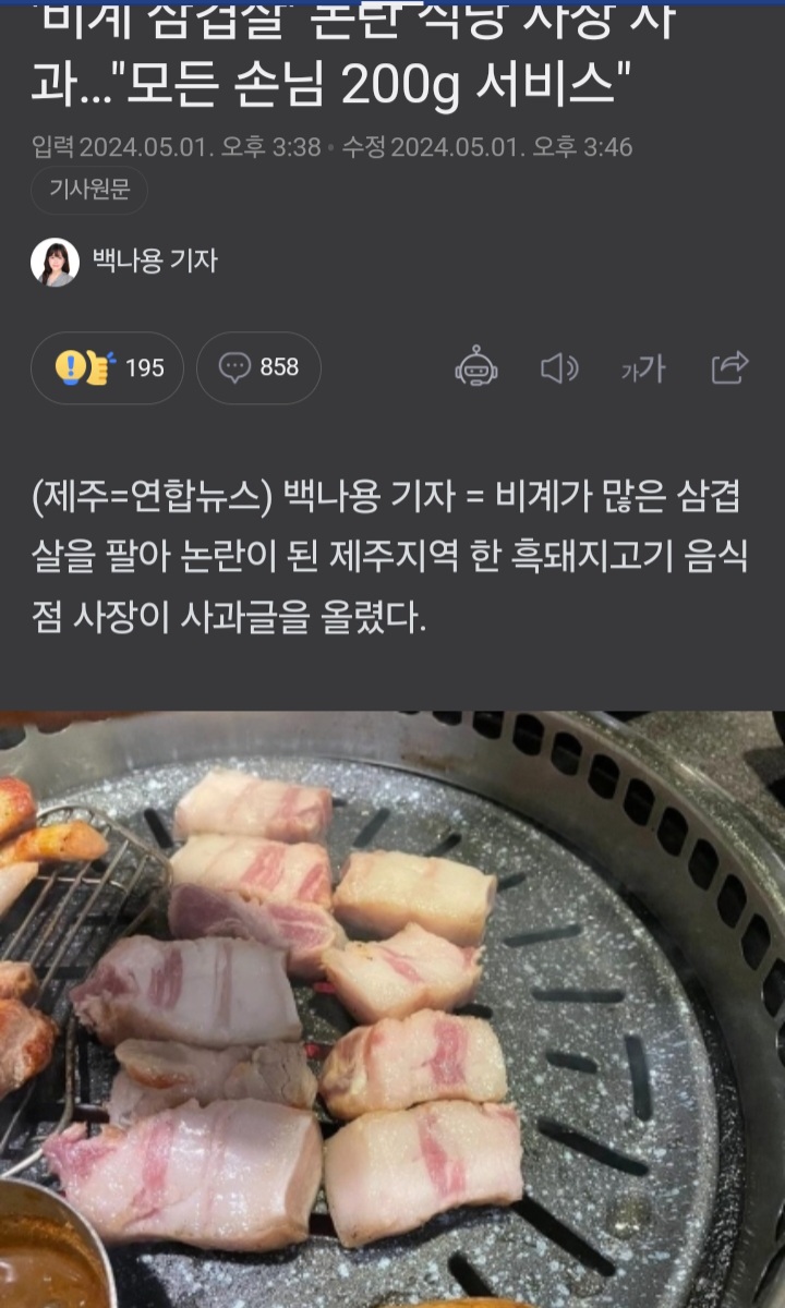 논란된 제주삼겹살사장 "모든손님 200g무료서비스" 페이지 정보 작성자 에밀리 댓글 0건 조회 50회 작성일 24-05-02 03:39 본문 그래도 안갈듯 목록 이전글아 모기 24.05.02 다음글범퍼가 이상하다 24.05.02 댓글목록 댓글목록 등록된 댓글이 없습니다.