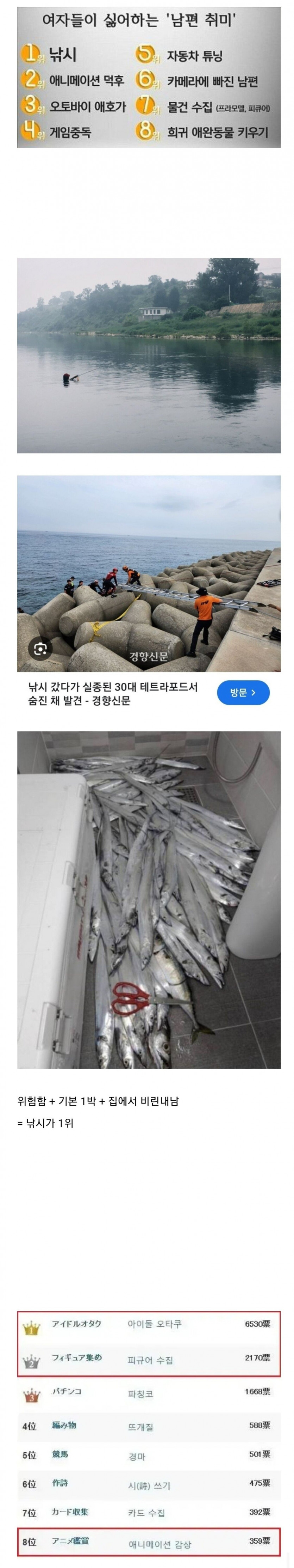 여자들이 싫어하는 남자 취미 순위.jpg 페이지 정보 작성자 고니고니야 댓글 0건 조회 67회 작성일 24-04-24 15:31 본문 낚시가 1위군요.. 목록 이전글맥시멈 노스코리아 4월호 24.04.24 다음글너무 피곤해서.. 24.04.24 댓글목록 댓글목록 등록된 댓글이 없습니다.