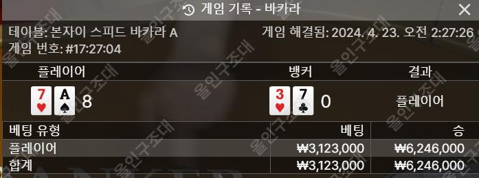 오늘의 깡 하이라이트 페이지 정보 작성자 마음을다스리는자 댓글 0건 조회 61회 작성일 24-04-23 02:35 본문 처음 상대 8일때 흠칫 했는데 행운이 따라주네요..^^오늘도 스타트 파이팅 하세요 ~~ 추천 37 비 목록 이전글맛저하세요~~ 24.04.23 다음글대장님 1:1문의 답변 24.04.23 댓글목록 댓글목록 등록된 댓글이 없습니다.