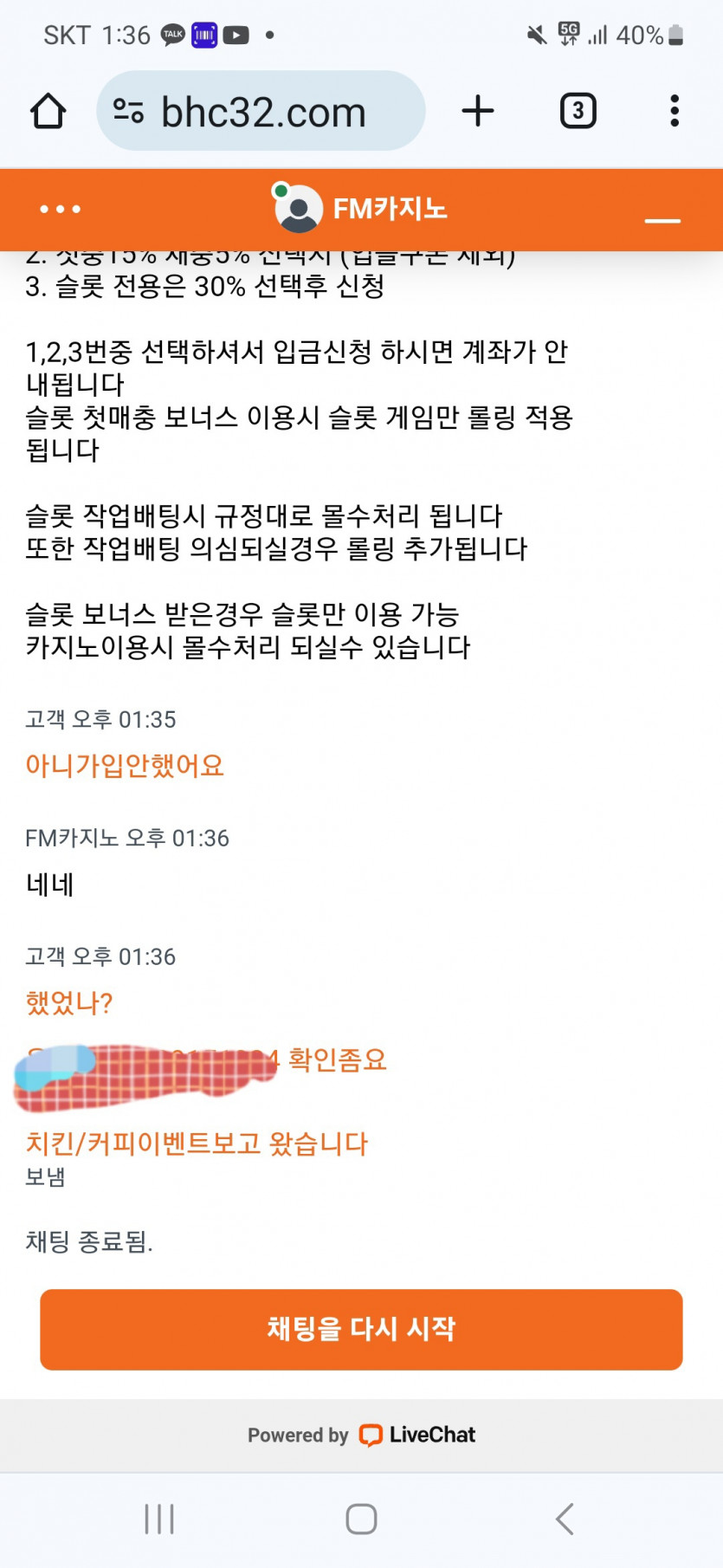 바로 채팅종료하네요.