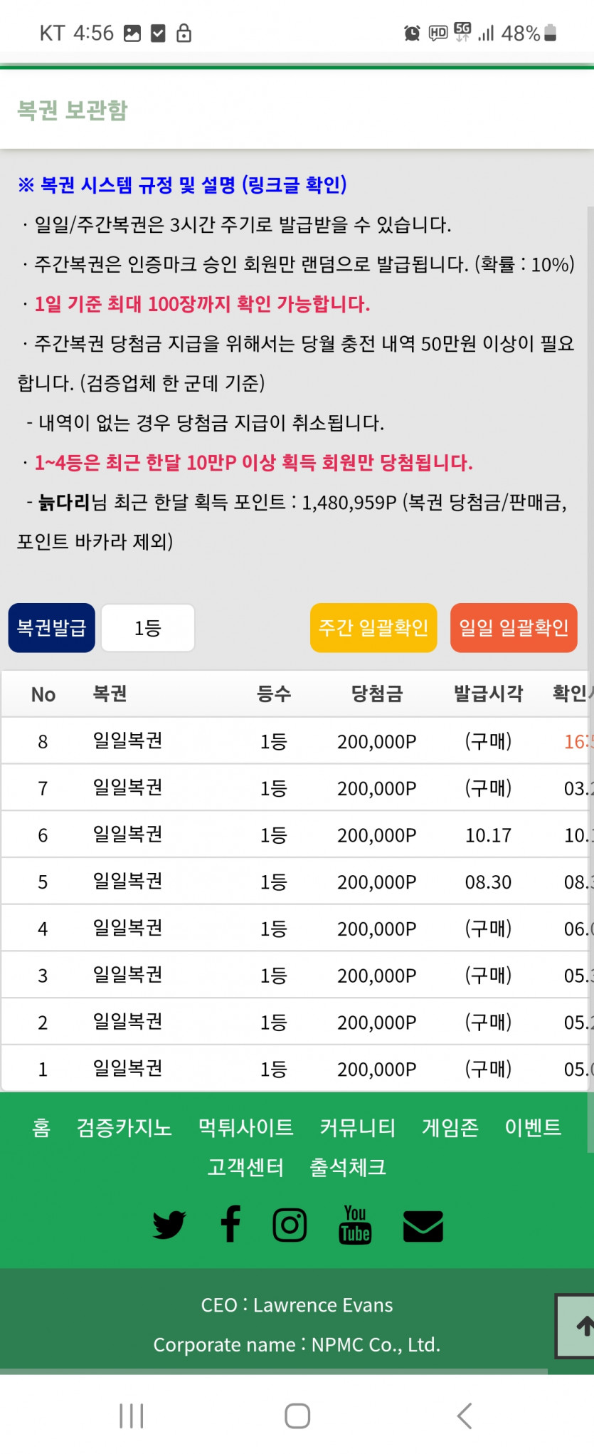 루다가상이 복권 루징 주셨습니다