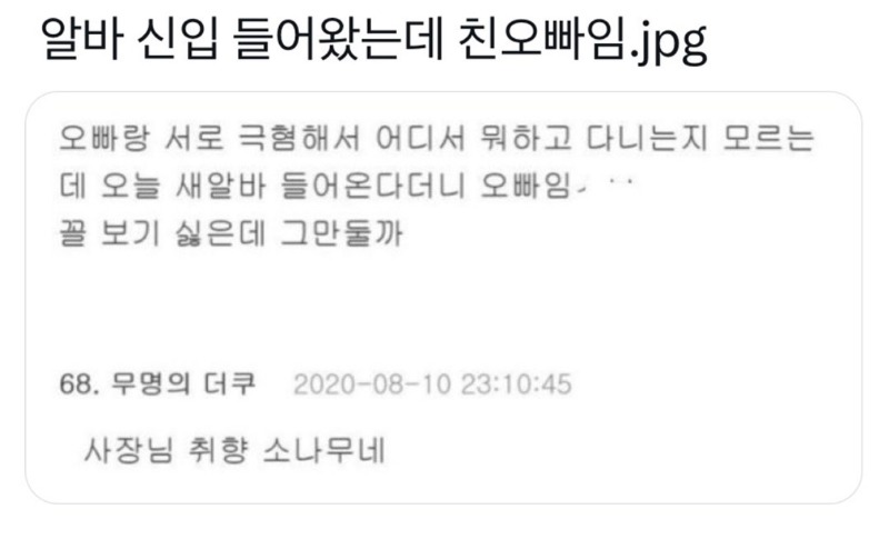 알바 신입 들어왔는데 친오빠임 페이지 정보 작성자 슬롯데이 댓글 0건 조회 92회 작성일 24-04-20 02:09 본문 그 사장님 한결같으시군요 ㅋㅋ 목록 이전글개빡친다 진짜 ㅋㅋㅋㅋㅋㅋㅋㅋㅋㅋㅋㅋㅋㅋㅋ 24.04.20 다음글새벽엔 닭발에 맥주! 24.04.20 댓글목록 댓글목록 등록된 댓글이 없습니다.