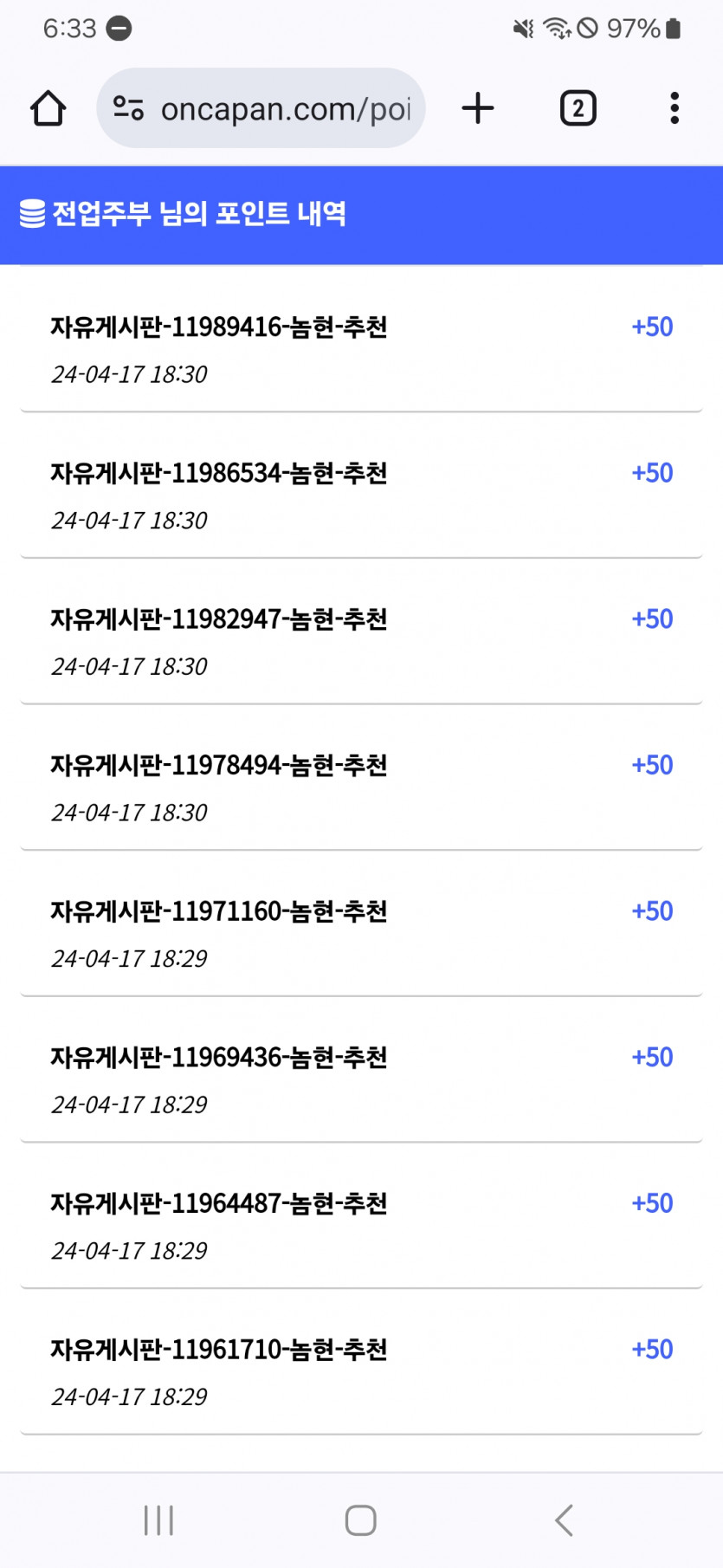 놈현님~당신은 나의천사^^ 페이지 정보 작성자 전업주부 댓글 0건 조회 93회 작성일 24-04-17 18:35 본문 폭풍으로 몰아치는군요~~감사합니다~^^ 목록 이전글혹시 지금 케이카 접속되시나요? 24.04.17 다음글트리플j님, 시간을돌리는자님 죄송합니다 24.04.17 댓글목록 댓글목록 등록된 댓글이 없습니다.