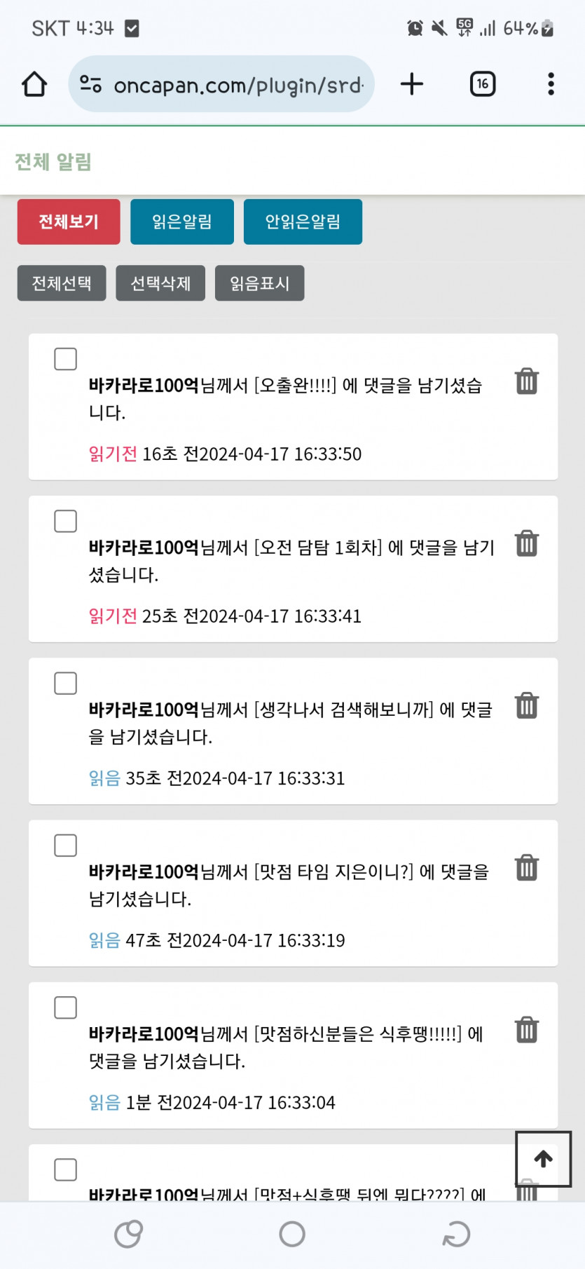 이분뭐죠.. 무서워요 ㅠㅠㅠㅠㅠ 페이지 정보 작성자 끼야호 댓글 0건 조회 87회 작성일 24-04-17 16:34 본문 모두 같은댓글.... 목록 이전글맛커담하세요 24.04.17 다음글즐퇴하세요♡♡♡♡ 24.04.17 댓글목록 댓글목록 등록된 댓글이 없습니다.