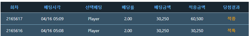 중국점 보고 플레이어 베팅했는데