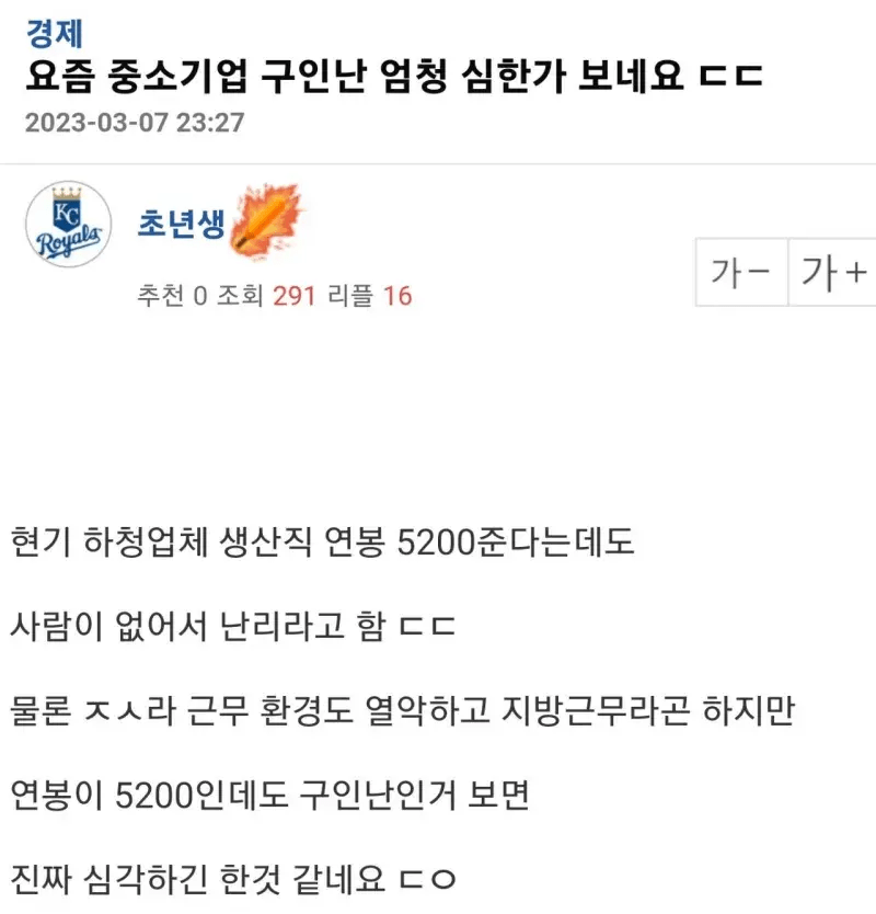 요즘 중소기업 연봉 5200에도 사람없어서 난리라함 페이지 정보 작성자 육구불만 댓글 0건 조회 64회 작성일 24-04-14 03:20 본문 씨발 ㅋㅋㅋ 목록 이전글말로만 듣던 "따갚되" 24.04.14 다음글상품권 판 사람 예상 루트 24.04.14 댓글목록 댓글목록 등록된 댓글이 없습니다.