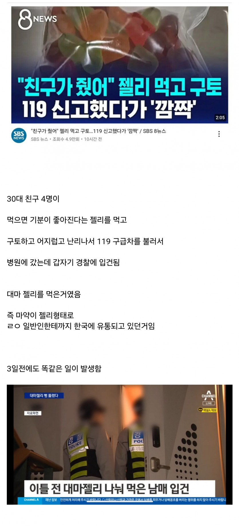 대한민국 마약 근황.jpg 페이지 정보 작성자 고니고니야 댓글 0건 조회 68회 작성일 24-04-13 12:55 본문 이젠 뭐 구할라면 구해지는게 마약인듯요.. 목록 이전글포바 깡 성공하고 싶다. 15+)어려워 어려워 24.04.13 다음글오늘의 운세 ! 찾아보세요 ^^ 24.04.13 댓글목록 댓글목록 등록된 댓글이 없습니다.