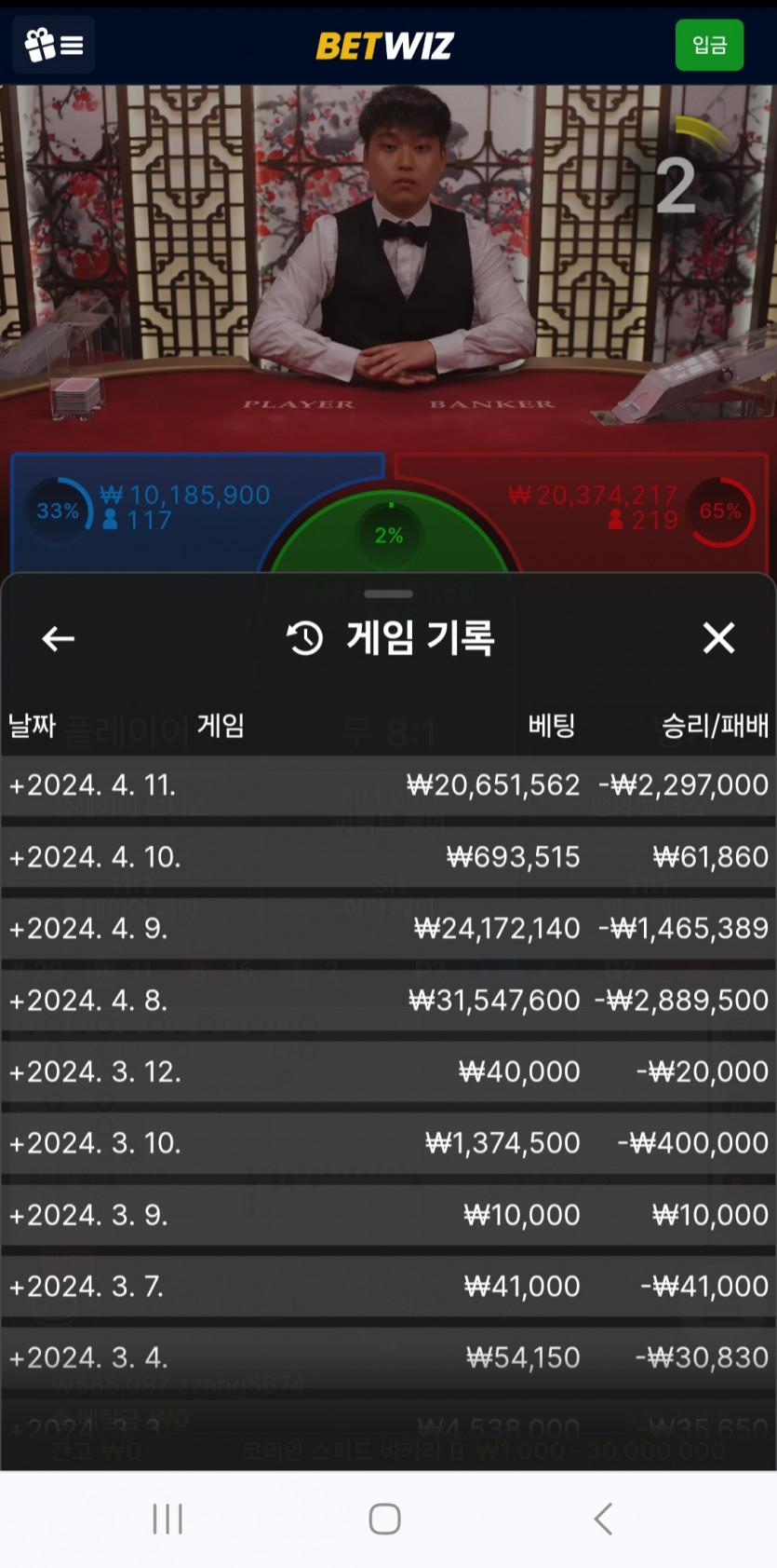 한동안 사용안했던 벳위즈 갔더만