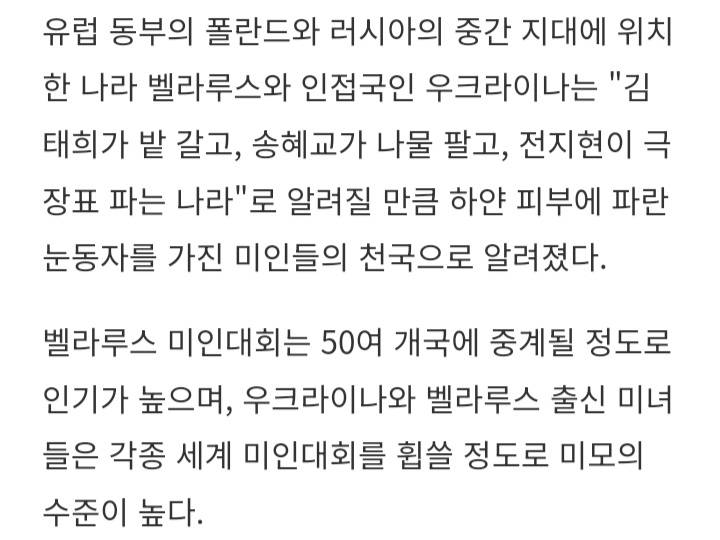 미인국가 벨라루스.우크라이나 ..모두 구소련!