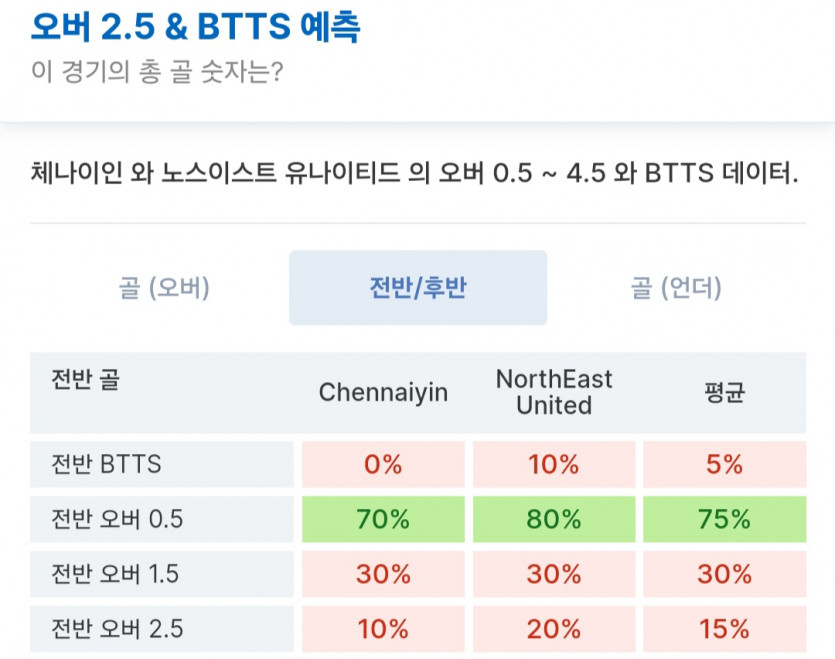 전반 쩜오 오버는 두팀 평균 75% 확률