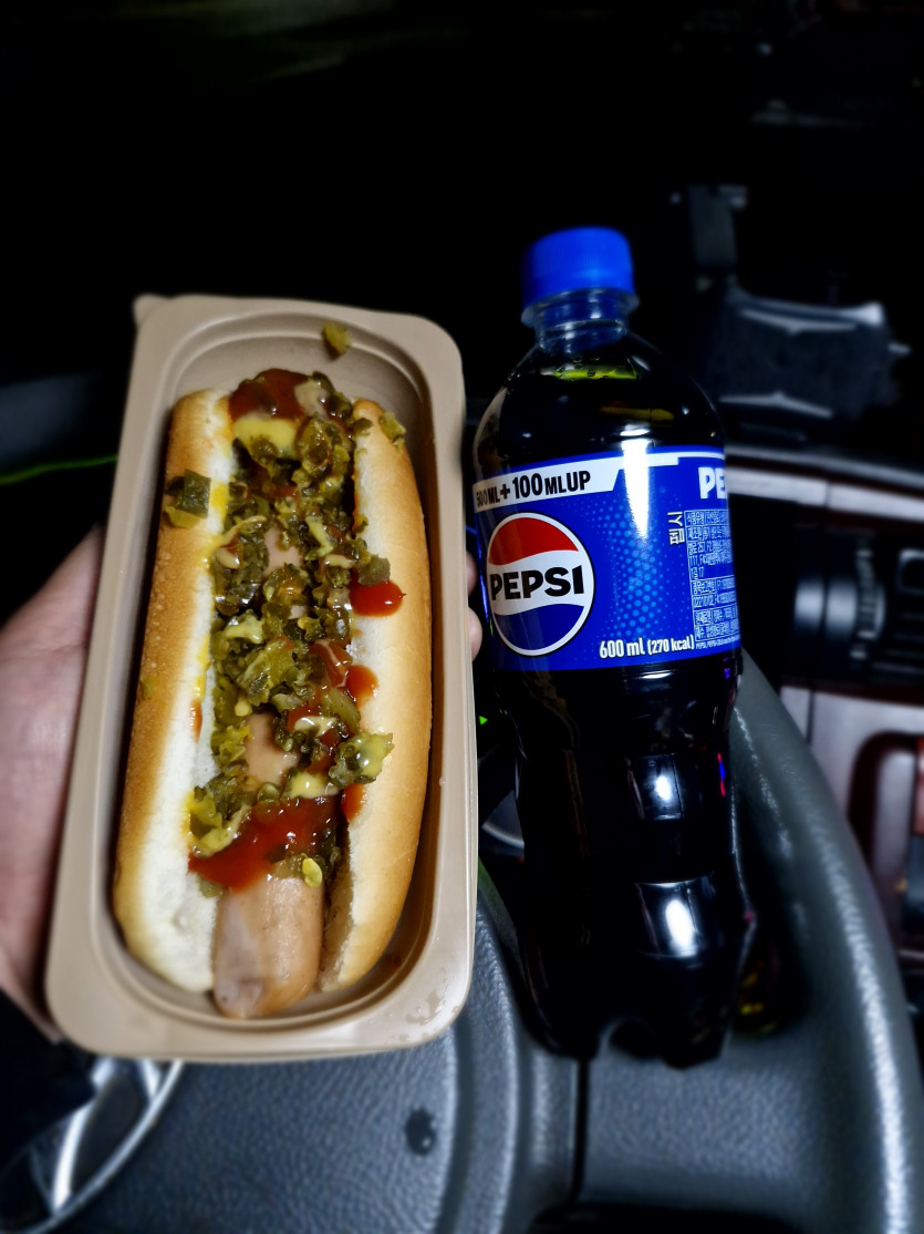 CU에서 핫도그와 펩시!