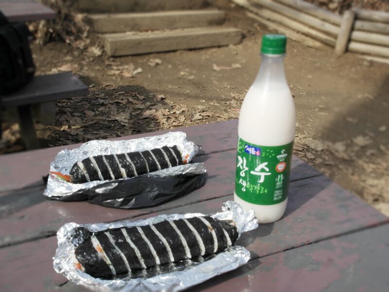 산에 와서 막걸리에 김밥 먹고있습니다. 가끔 몸을 이렇게 움직이는것도 좋네요