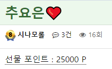 시나모롤♥ 페이지 정보 작성자 추천요정은행이 댓글 0건 조회 55회 작성일 24-04-08 08:00 본문 소중한 포인트 선물 감사합니다!아침부터 기분좋아져쓰! >.< 목록 이전글굿모닝입니다 24.04.08 다음글오늘 하루 쉽지 않겠네요 24.04.08 댓글목록 댓글목록 등록된 댓글이 없습니다.