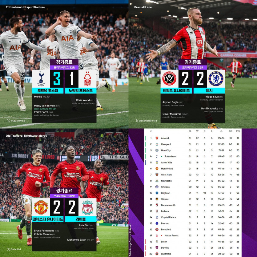 리버풀의 승점 드랍으로 아스날 1위 수성