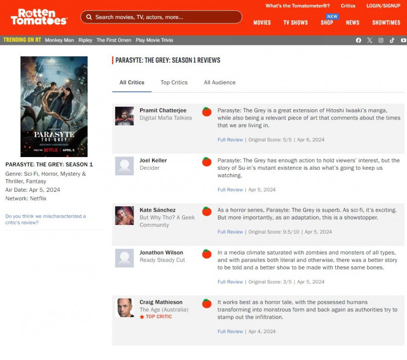 기생수 더 그레이 로튼토마토 평론가 평가 번역