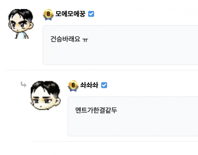 이분 뭐하는거죠? 페이지 정보 작성자 모에모에꿍 댓글 0건 조회 61회 작성일 24-04-06 21:00 본문 자꾸 저 따라와서답글다네요 ㅋㅋ귀여워욤 ㅋㅋ머리감았죠? 목록 이전글부산협객 박현우 피지컬 24.04.06 다음글행님들.. 24.04.06 댓글목록 댓글목록 등록된 댓글이 없습니다.
