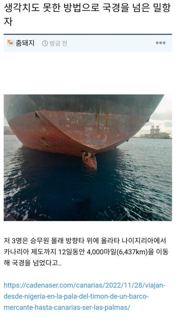 생각치도 못한 방법으로 국경을 넘은 밀항자 페이지 정보 작성자 아쿠아스코어 댓글 0건 조회 889회 작성일 24-04-05 18:08 본문 목록 이전글금손 24.04.05 다음글선관위 삽질에 대파백 등장 24.04.05 댓글목록 댓글목록 등록된 댓글이 없습니다.